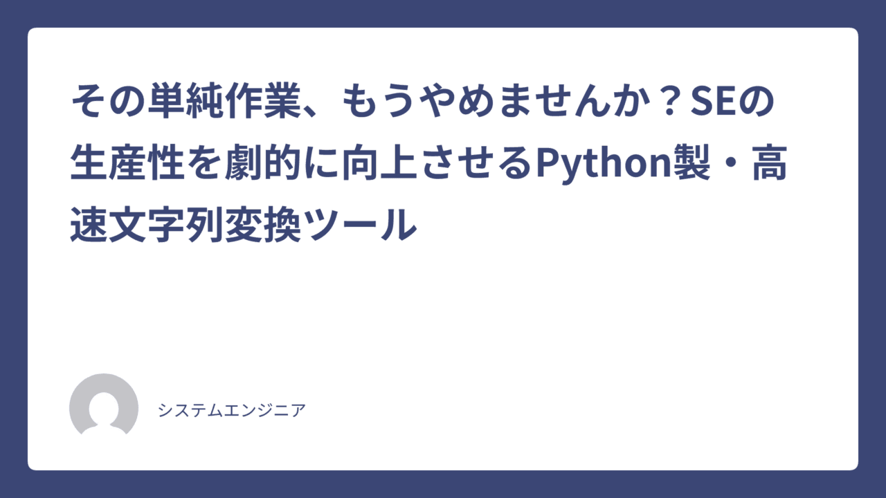本記事は、システムエンジニアが日常的に直面する、非効率な文字列変換作業という課題に焦点を当てる。大文字・小文字変換、全角・半角の統一、SQLのIN句生成といった単純作業は、積み重なるとエンジニアの集中力を削ぎ、生産性を低下させる「見えないコスト」となる。この問題を解決するため、筆者が開発したPython製のコマンドラインツール「String-Multitool」を紹介する。本ツールは、GUIを排したCUIによる軽快な動作を特徴とし、エンジニアのワークフローを中断させることなく、反復的なタスクを自動化する。この記事を通じて、単純作業をツールに任せ、より創造的で価値の高い仕事に集中するための具体的なソリューションを提示する。